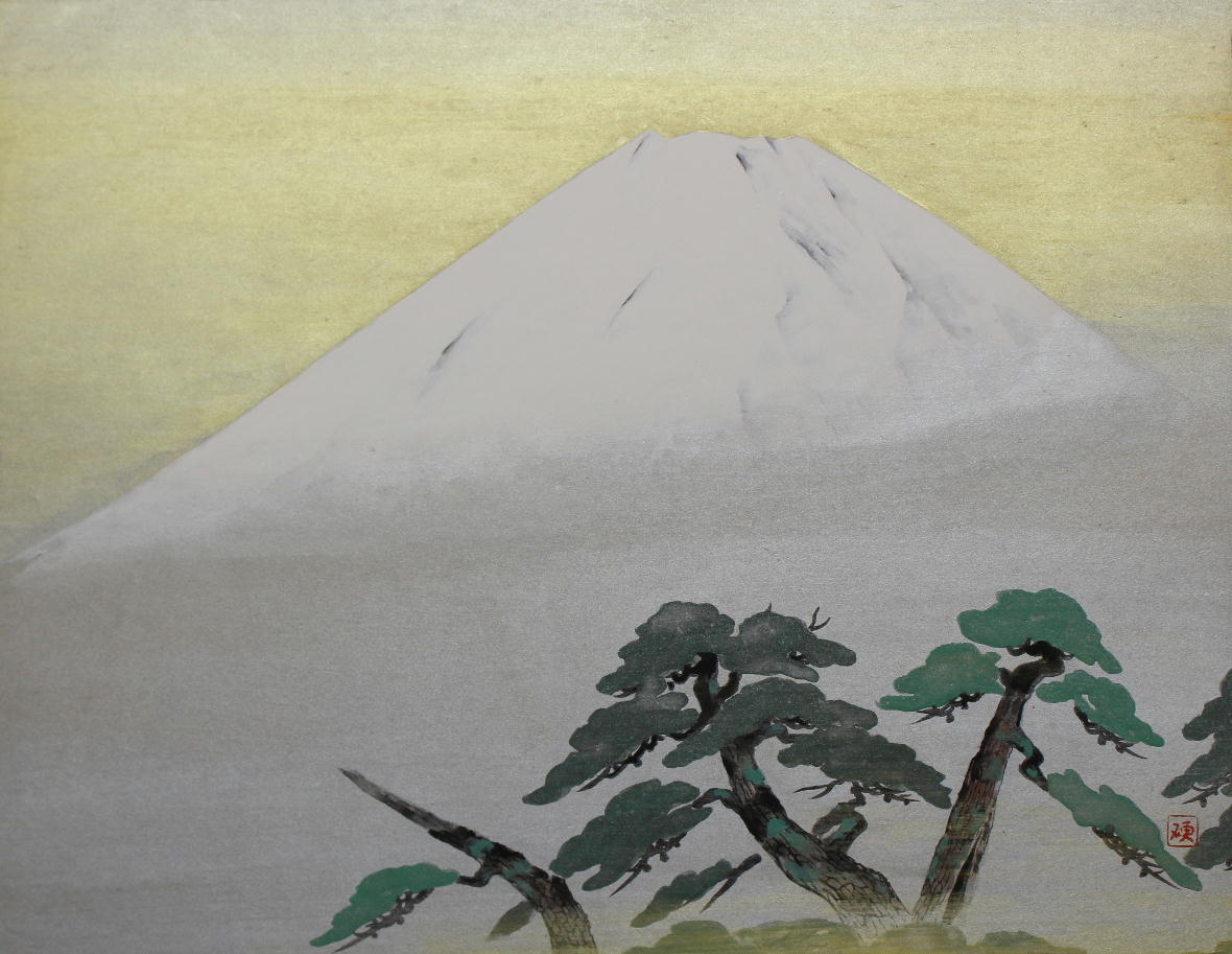小山 硬 『春雪冨士』 10号 岩彩