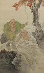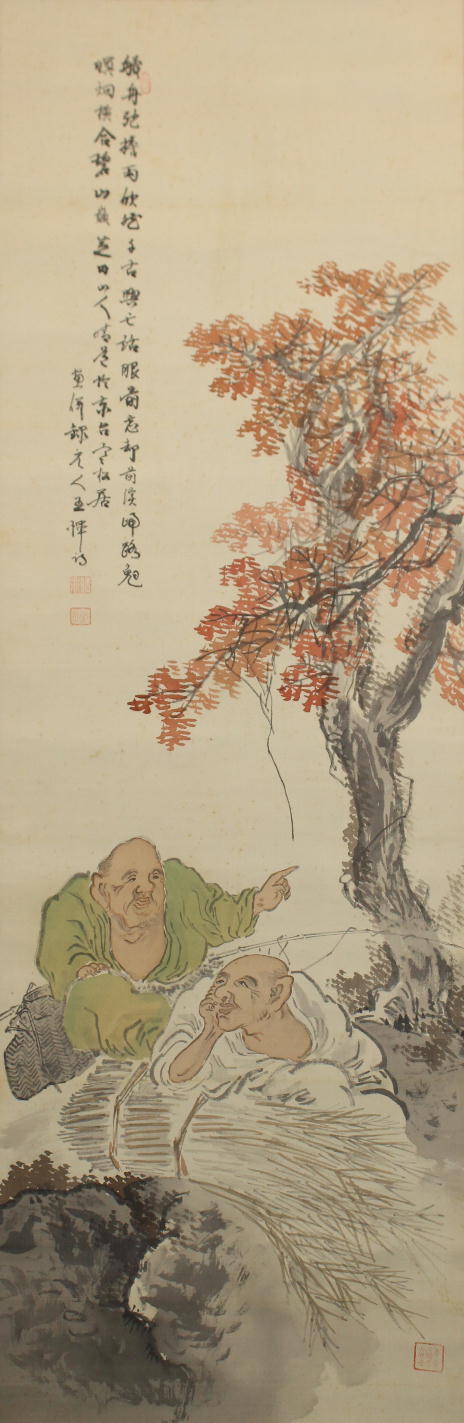 小坂芝田 「漁樵問答」 尺五寸 絹本 共箱 壬子(大正1年)41歳作