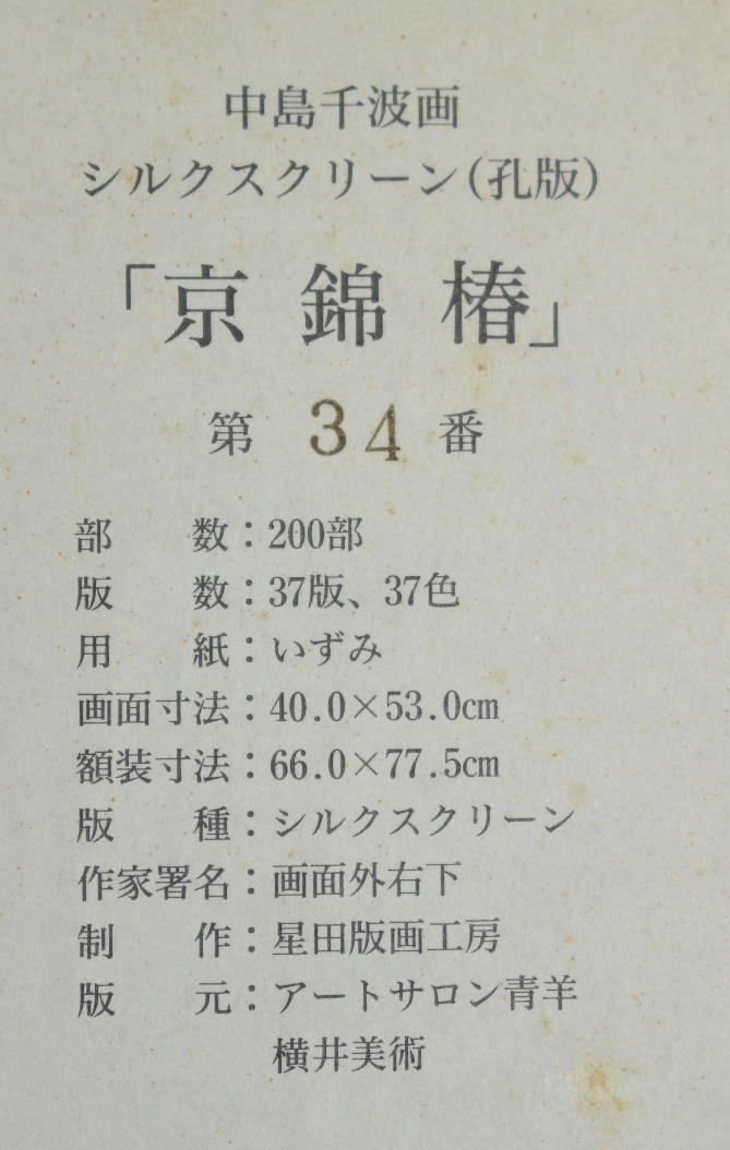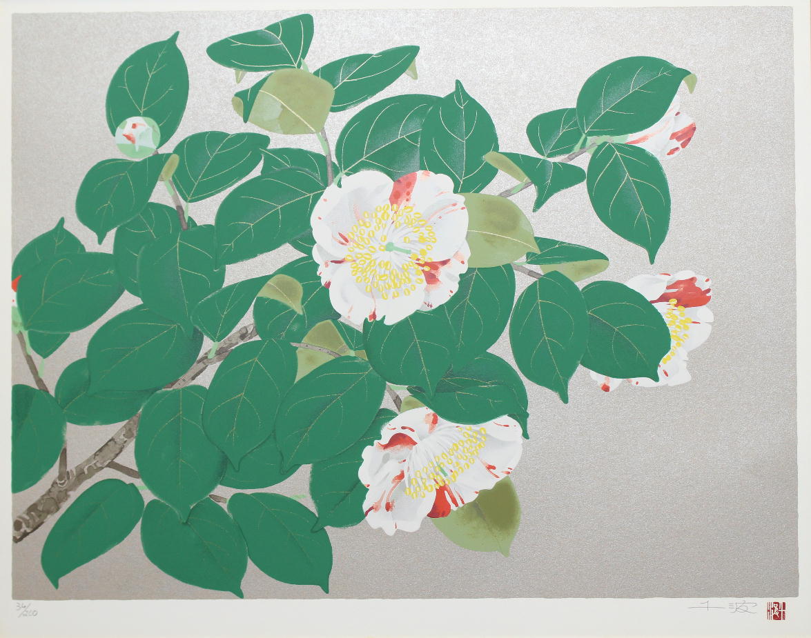 中島千波 「京錦椿」 10号 シルクスクリーン 34/200